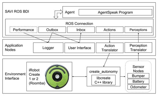 - Pantoja, C.E.; Stabile, M.F.; Lazarin, N.M.; Sichman, J.S. ARGO: An Extended Jason Architecture that Facilitates Embedded Robotic Agents Programming. In Engineering Multi-Agent Systems; Baldoni, M., Müller, J.P., Nunes, I., Zalila-Wenkstern, R., Eds.; Springer International Publishing: Cham, Switzerland, 2016; pp. 136–155. [Google Scholar]