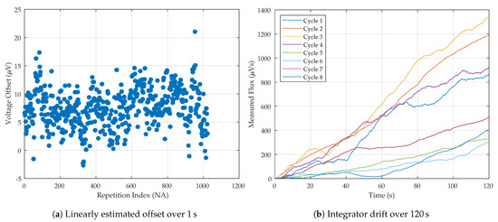 - Amodeo, M.; Arpaia, P.; Buzio, M. Integrator Drift Compensation of Magnetic Flux Transducers by Feed-Forward Correction. Sensors 2019, 19, 5455. [Google Scholar] [CrossRef] [Green Version]