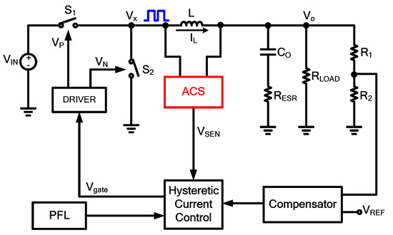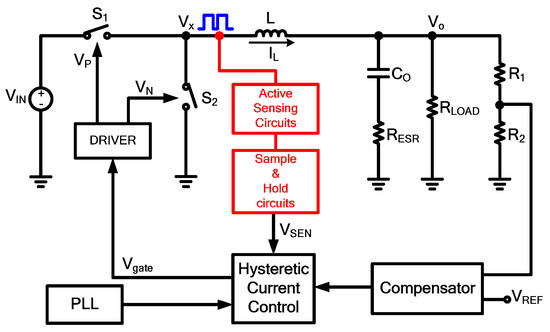 - Chen, J.J.; Hwang, Y.S.; Ku, Y.T.; Li, Y.H.; Chen, J.A. A Current-Mode-Hysteretic Buck Converter with Constant-Frequency-Controlled and New Active-Current-Sensing Techniques. IEEE Trans. Power Electron. 2021, 36, 3126–3134. [Google Scholar] [CrossRef]