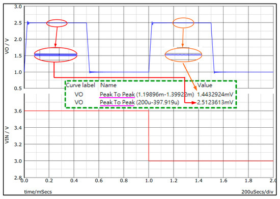 | Max. output ripple (@Vin = 3.6 V, Vo = 2.5 V) | 2.51 mV | |