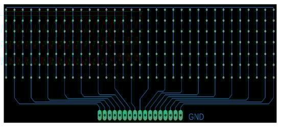 The design of the MS prototype bottom layer, which functioned as the varactor DC biasing layer, is shown in Figure 8 with a reduced number of lines for convenience.