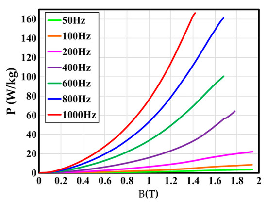 where and are the frequency and the magnitude of magnetic flux density, respectively. and are the coefficients of the hysteresis loss. Generally, when , = 1.6; and when , = 1.5~2.5.