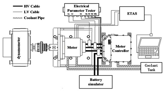 In order to verify the results of FEM simulation, the measurement system was designed and set-up to test the temperature of the motor. Schematic diagrams of installation and test beds are shown in Figure 17 and Figure 18, respectively.