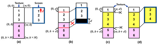 d) of the cropped region into the starting position (0, 0) of the screen in the negative Y-direction to display the cropped region to the screen region, as shown in