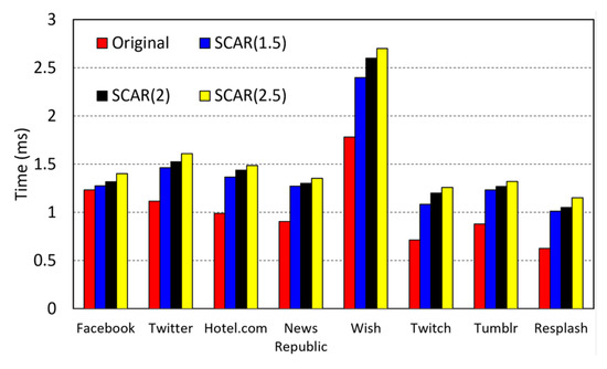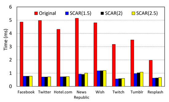 Figure 20 shows the impact of the reading time interval on power consumption. In the realistic smartphone setting, SCAR(1.5) improves the power consumption by 9% to 23% at the reading time interval of 0 having no reading time, compared to “Original”. This improvement is slight less than that in