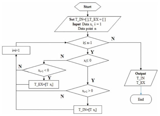 where x was the array of preprocessed data. The ZA was used as a reference value for the following zero-crossing detection process, which detected zero crossings considering a couple of values and assessing that they satisfied the following inequalities and storing, if verified, the corresponding instant. The first proposed method calculated the RR from the Mean Time Difference (MTD) between zero crossings.