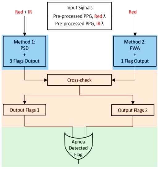 The measurement of blood oxygen saturation (SpO2) is called oximetry; it relies on an infrared emitter that illuminates a small skin area and a receiver to detect light absorption based on blood oxygenation and deoxygenation levels []. Wearable oximetry sensors are widely commercialized and applied on the wrist, finger, head, earphones, earlobe, thigh, and foot []. Also, several algorithms are reported in the literature to extract the RR from the ECG (Electrocardiogram) usually detected by clinical instrumentations and wearable devices (e.g., smartwatch, smart band, etc.). All of them are based on the analysis of the three respiratory modulations featuring the ECG and PPG [].