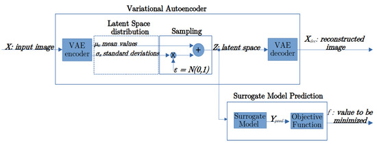The encoder parameters are influenced by the performance of the surrogate model, thus the VAE incorporates useful features for the optimization, generating a latent space that is well regularized and optimized for the good operation of the surrogate model;