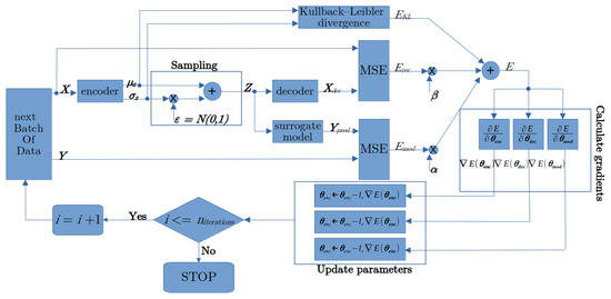 The variational autoencoder and the surrogate model were simultaneously trained in a custom multi-model training loop, aiming to minimize a combined loss function that includes a regularization term;