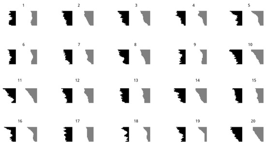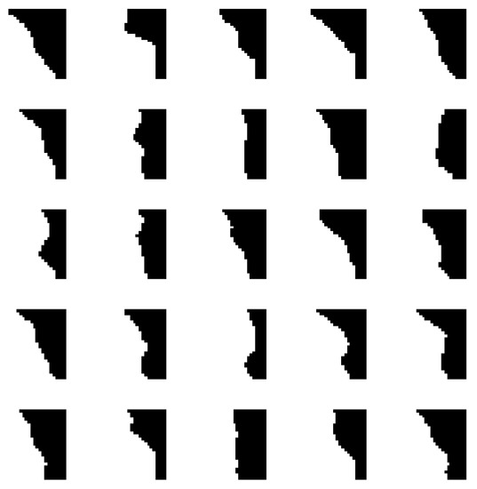 An FEA simulation was carried out using Comsol for each generated profile, obtaining the corresponding and field distribution in the nine target points. The dataset for deep learning then consists of the 10,000 input images of dimension and the corresponding 10,000 induction field patterns of dimension , which represents the output. In the following, we use to denote input images, while stands for the output induction field patterns.