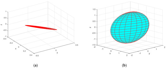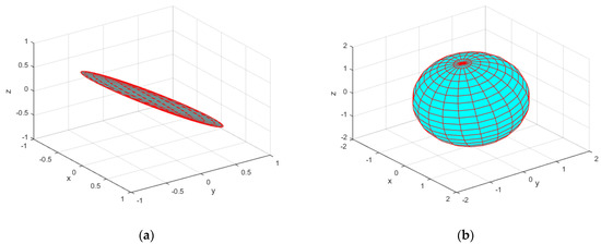 The direction of each axis of the ellipsoid is consistent with the eigenvector of . The length of each axis is equal to the reciprocal of the square root of its eigenvalue, and it is also equal to the singular value of . When robotic manipulators approach a singular configuration, and the elliptical plate has almost zero thickness [31].