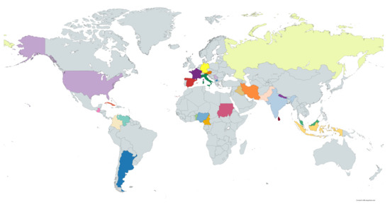 Geographical distribution of school’s participants and faculty members. Represented countries are shown in color.