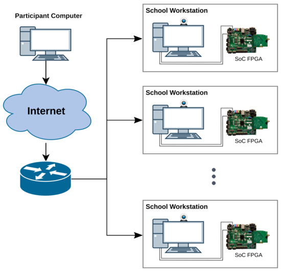 Using the described setup, the remote laboratory (computer and SoC-FPGA hardware boards) was available to all participants 24 h a day for the 4 weeks of the school program. In addition to being present during the scheduled assisted hands-on sessions, the participants could access the remote laboratory at any other time, although without direct assistance.