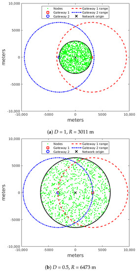 - = radius of the network deployment.