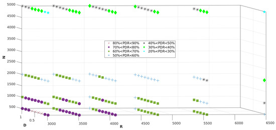 | N | R | D | Under Sensitivity Loss% | Collision Loss% | Ch. Saturation Loss% |