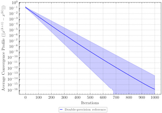 There are two categories of linear system solvers: direct solvers (e.g., Gaussian Elimination, Cholesky decomposition) and iterative solvers. Carson and Higham [24,25] have proposed a general algorithm for solving linear systems based on iterative refinement [26] with three standard FP precisions. However, this method only uses standard precisions that traditional processors support. Moreover, the technique is mixed-precision in space but not in time, i.e., it contains mixed-precision instructions. Still, each instruction keeps its precision for all iterations. Authors of [27] have built on the previous work and proposed a solution with five different precisions. In contrast, new FP data types supported in NVIDIA GPUs were introduced in [28]. Finally, others [29] proposed an adaptive scheme to reduce communication overhead by selectively storing parts of the system preconditioner in different precision formats (half, single, or double). In this paper, we focus specifically on classical stationary iterative solvers such as Jacobi, Gauss–Seidel, Richardson, Successive Over-Relaxation, [30,31] etc.