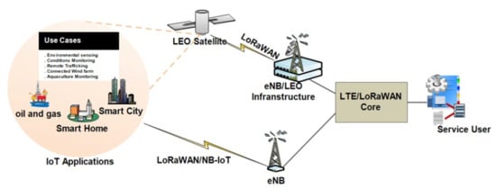 The Internet of Things (IoT) plays a crucial role in achieving connected living through increased business activities, remote operations, and social interactions. IoT technologies are more pronounced in urban areas through applications such as smart city, smart manufacturing, wearables, smart homes, self-driving cars, etc. These applications are driven by factors such as established business use cases, the availability of communication network resources and coverage, power and regulatory frameworks. These factors affect the rate of IoT penetration in rural localities, especially in developing countries where power and communication network coverage issues limit deployment opportunities and the realisation of the United Nations’ Sustainable Development Goals (SDGs) [1]. We believe that regions with limited terrestrial infrastructure will be best serviced by low Earth-orbiting (LEO) satellites and LPWAN-based IoT applications for services such as asset tracking and environmental monitoring, as these have the lowest demand for infrastructure. These approaches, however, may have drawbacks if two-way communication is not supported for communications between LEO satellites and ground-based IoT infrastructure.