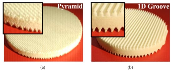 3D-printed windows with (a) pyramids; (b) one-dimensional grating of special shape.