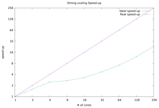 Strong scaling speedup.