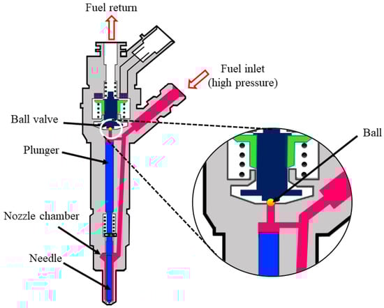 The injector plays a role of injecting the fuel stored at high pressure in the CR into the combustion chamber at the exact time decided by the ECU. Ideally, a CRD engine injector is illustrated in Figure 4 which identifies the key constituent components.