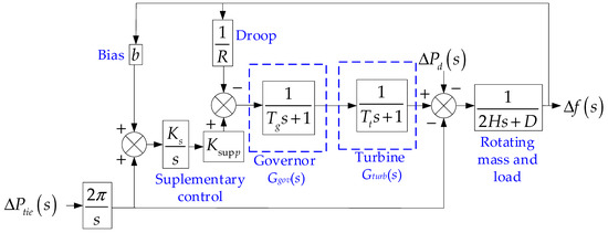 Frequency control can be considered to be one of the most crucial aspects of ancillary services; it is responsible that the power system operates within its acceptable frequency limits [29]. Frequency control practices differ significantly between the various transmissions system operators in the world [30]. The classical approach to frequency control can schematically be divided into three: primary, secondary, and tertiary control (some specific applications are also called quaternary frequency control systems). The tertiary control is typically supplementary with very slow response than the other two controllers: primary and secondary frequency control. A specific and detailed explanation of the frequency controls in the traditional power system can be found in very well-known books as [31,32].