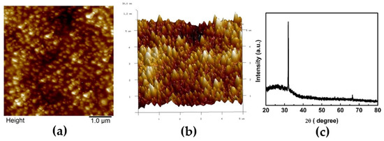 ZTO Characteristics (a) AFM height image; (b) 3D images; (c) XRD pattern.
