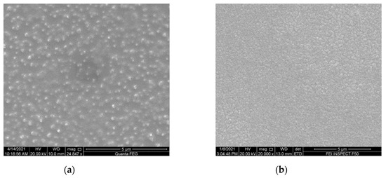 The surface morphology of the ZTO with different layers is examined on plane ITO taken by SEM as shown in Figure 3a,b. A single layer of ZTO shows huge pinholes that cause the leakage current and increase the structure’s heat, affecting the performance of the entire layers’ interfaces. To overcome these issues, two layers of ZTO exhibit pinhole-free surface, which improved the performance of the QD-LED.