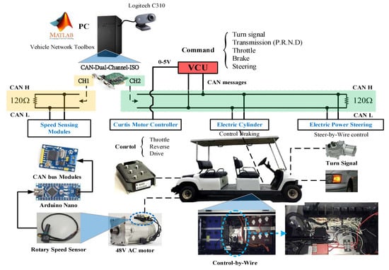 An electric golf car is used to implement the proposed autonomous overtaking system, and the system configuration of the test vehicle is shown in