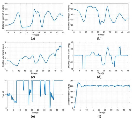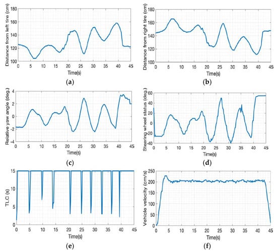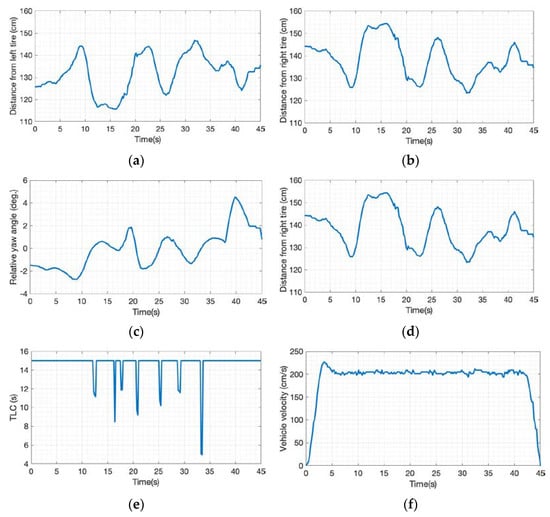 Figure 8e,f show the TLC and vehicle velocity, respectively.