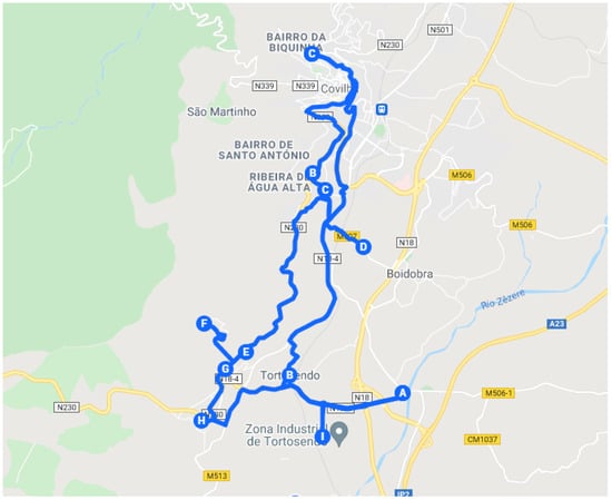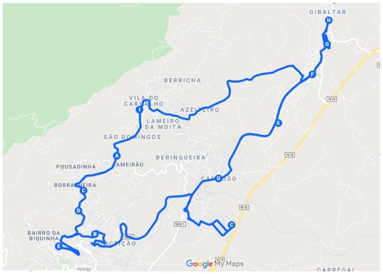 Fujdiak et al. [] applied genetic algorithms in a real case study of waste collecting in smart cities context as an optimization method. A crossover and mutation of the Floyd–Warshall algorithm was performed. This algorithm was chosen since a metric system was used and the negative values of edges are not used. The crossover allowed to develop changes in the new population and consequently find a better solution. The mutations allowed to exchange nodes. As in our case study, asymmetric matrices considering the existence of one-way streets were resorted to. Despite being similar case studies, this algorithm does not apply to the current problem since despite generating the solution for the shortest distance between all pairs of vertices, it was applied to a problem with a smaller sample size.