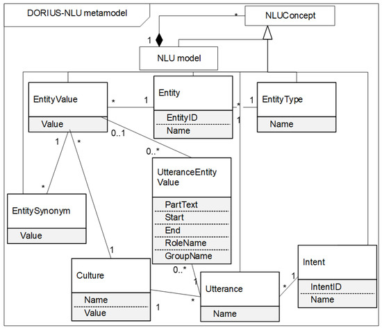 - Corresponding metamodels as well as rules for a mapping between generic and specific NLU metamodels.