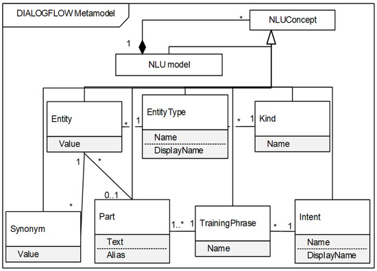 The Dialogflow metamodel is shown in Figure 4. NLU Concept is further specialized into concepts that are more concrete: