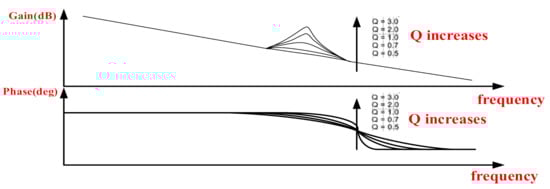 The frequency responses corresponding to a pair of complex poles with different Q values.