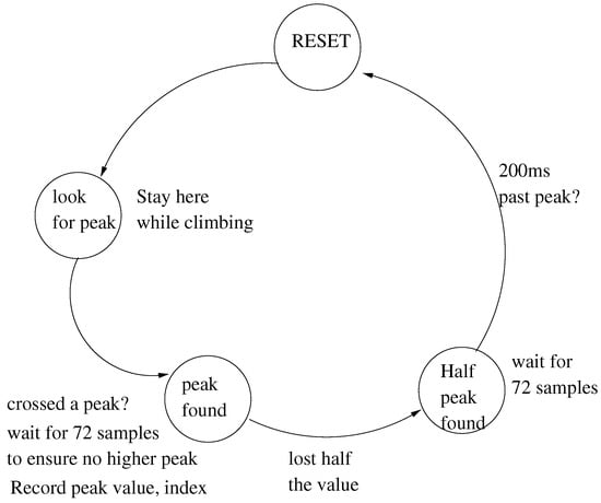 The first stage is responsible for the filtering and QRS peak detection, and the sequence followed is shown in Listing 1.