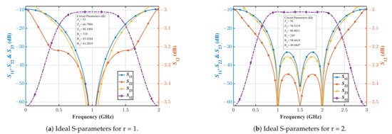 Ideal S-parameters with variation of the frequency ratio.