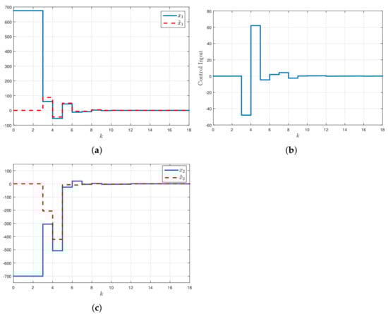In the plotted Figure 3a–c, it can be seen that the system is stabilized regardless of time-varying delay, external disturbance, and sensor saturation. Moreover, for a non-causal system, a control problem is soved when the system states are unmeasured via the proposed control scheme, which is pertinent for the analysis in this paper.