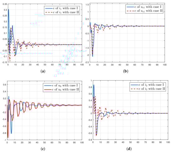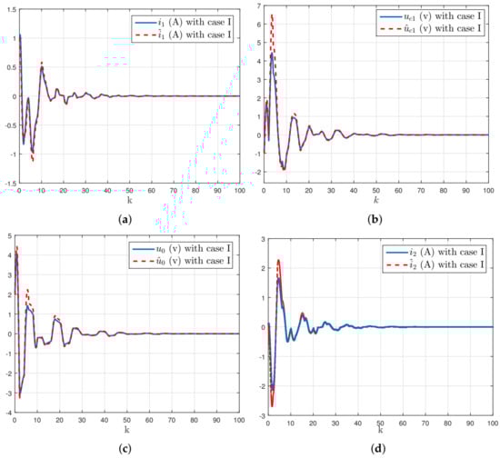 From Figure 9, it can be observed that all the presented controllers in case I and case II guarantee the convergence of the system. However, the evolutions of the estimated states were improved using the proposed gains in case I.