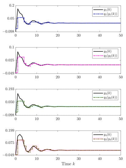 Next, the uncertainty introduced by the quantization error is transformed into a norm bounded uncertainty. Considering , referring to the technology from the authors of [30], letting and , we have