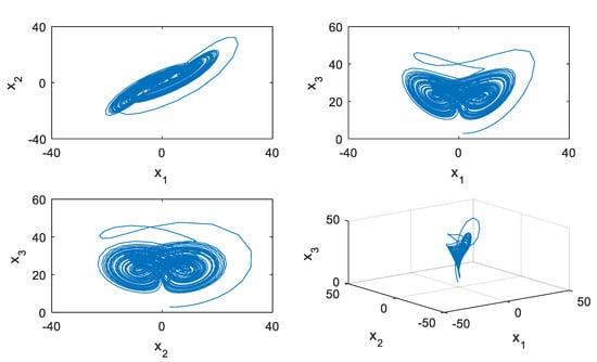 where is the state vector. is the number of fractional orders with . The chaotic behavior of fractional-order Chen chaos system is presented in Figure 1 with . The initial conditions are set as .