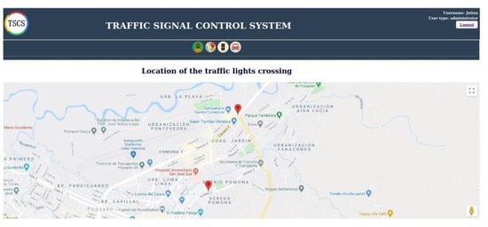 Finally, the developed web application and database allow interaction of users (administrator and TOP) with the TSCS. The interfaces allow an intuitive interaction and are fully integrated with the developed algorithms to allow an adequate traffic control of the intersections managed by the system.