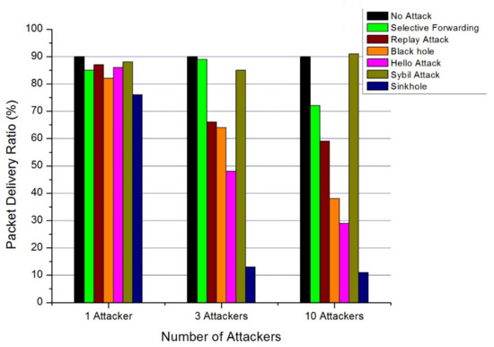 - Kaushik, I.; Sharma, N. Blackhole attack and its security measure in wireless sensors networks. In Handbook of Wireless Sensor Networks: Issues and Challenges in Current Scenario’s; Springer: Cham, Switzerland, 2020; pp. 401–416. ISBN 978-3-030-40305-8. [Google Scholar]