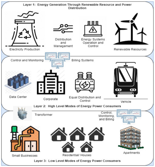 With the increased use of renewable resources, most of the two energy resources are used, such as solar and wind, which are now in the process of creating large and small productions and a scalability of power generation [4]. Therefore, the requirement is effectively increasing, and the use of advanced control techniques and procedures to work in a microgrid system are makeable. In the last scale of energy production, the operation and control of the system cover the principles involving energy conversion and prominent renewable sources, including the fluid mechanics theory and thermodynamics [5]. However, the challenging aspect is the real-time secure operation and control of distributed power systems at various scales to support a more efficient and reliable electric grid. The current central station power plant controls the electric grid with a single way of power delivery through the distributed generators and, based on this, a distributed operate and control management can handle all the transactions with advanced node communication, and provide robust performance in terms of efficiency and enhanced reliability [6]. The secure monitoring of energy and distributed power system control operations of node transactions are fully protected through a blockchain cyber-physical system. It enables the optimized operation of the system and provides a way to control the node security and preservation along with an improved resilience and more reliability.