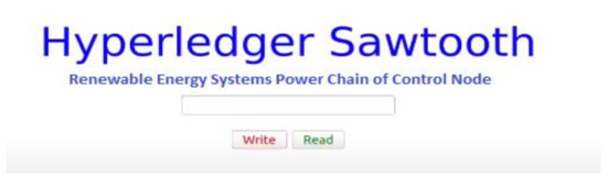 Web-based blockchain Sawtooth-enabled renewable energy and power chain of node interface.