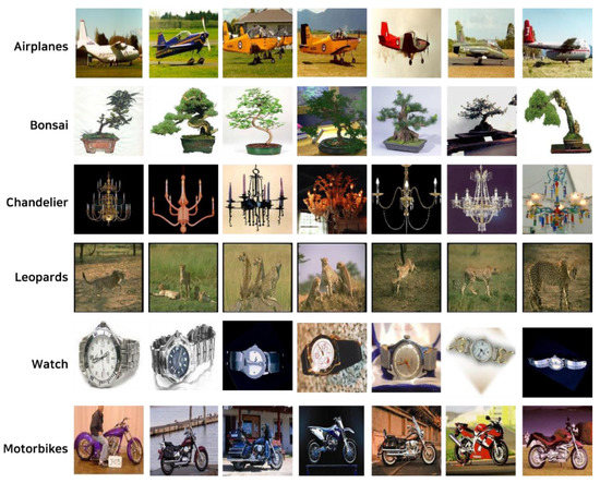 Caltech 101 data and crawling data were used to assess CMP and a restructured neural network in performance. Caltech 101 is public data provided by the University of California, consisting of 9146 images in total and 101 categories. There are huge differences in the amount of data among the categories from the minimum 31 to maximum 800. For model learning, 12 categories were selected which contained 100 images or more. Of them, seven categories were used for their data after five were excluded for similar or black and white images. These seven categories are airplanes, motorbikes, faces, watches, leopards, Bonsai, and chandeliers.