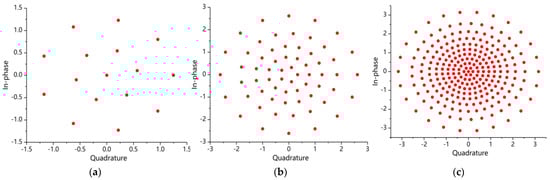 Different orders of constellation based on IPM (a) M = 16; (b) M = 64; (c) M = 256.