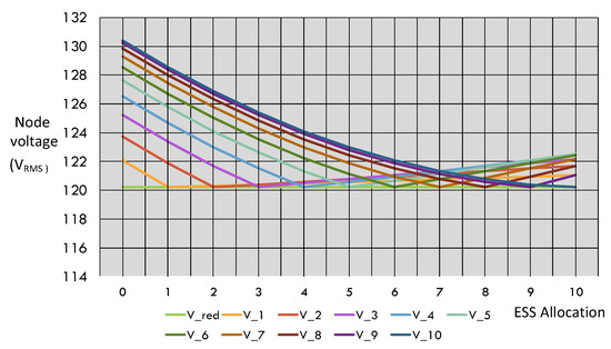 4.1.3. Node Voltage Evolution When the ESS Is Discharged