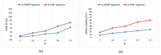 Comparison of k-NDDP with k-NMF(SOCFB-USFCA72). (a) Time; (b) edge change.