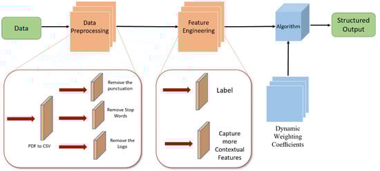 With the rapid growth of insurance policies, consumers and insurance industry practitioners need to effectively extract useful information from a vast number of insurance documents. For time and manpower consuming activities such as identifying the key terms and differences between similar policies, intelligent document processing methods are highly desirable. Various document processing techniques have been developed, allowing electronic documents to be processed more efficiently [,,,]. In recent years, machine learning methods have been widely used in data mining and information extraction and received great success. However, in the specific field of insurance industry, Chinese insurance documents pose extra challenges because most exist in unstructured forms and the text features are often mixed with some noise, leading to failure of feature recognition when processing documents. Therefore, further work is needed to automatically process unstructured insurance documents to extract key information and transform them into structured data without losing important features.