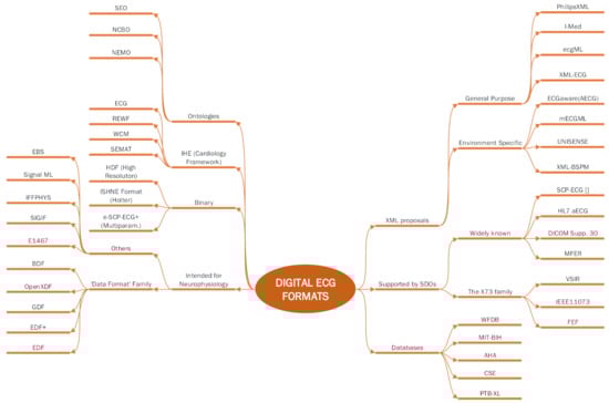 - Trigo, J.D.; Alesanco, A.; Martinez, I.; Garcia, J. A Review on Digital ECG Formats and the Relationships Between Them. IEEE Trans. Inf. Technol. Biomed. 2012, 16, 432–444. [Google Scholar] [CrossRef]