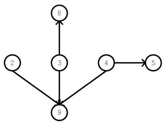 We propose implementing quantity analysis to obtain the substitution capability of candidate oracle data and then using the result to determine which oracle data can be removed. For a given path, the quantity analysis first obtains the corresponding subgraph of the data dependence graph (there may be several graphs; we analyze them one by one). Figure 4 shows the subgraph of DDG of the given path (the path is the path corresponding to the red node in Figure 2. For the convenience of analysis, we only keep the nodes that contain ). Since the edges in the data dependence graph can represent a data dependency relation, the quantity analysis calculates the dependence relations of each candidate oracle data according to the out-degree and in-degree of the od nodes in the subgraph of DDG.